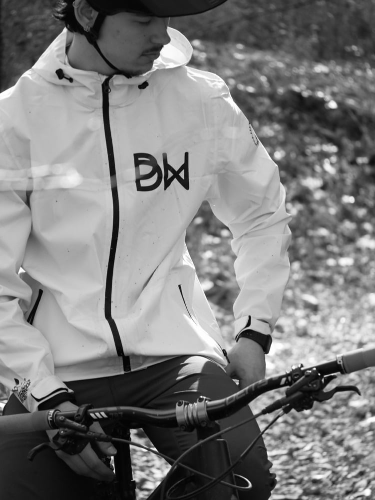 Since last winter, we have successfully launched this jacket, fully designed to protect against rain. Believe me, you can be under the rain for hours and you won't get wet at all, thanks to the use of sealed and vulcanized fabric that makes this garment a shield against water. A few years ago, the problem with these fabrics was that they felt somewhat stiff for use in sports where flexibility is essential. The good news is that thanks to the development of flexible synthetic threads, our fabric has incredible flexibility in four directions. For this reason, it is perfect for any type of extreme physical activity, such as mountain biking. Last season, we also realized that this garment works very well in extreme weather conditions (60°-40°F).